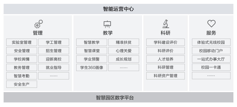 智能化智慧校園解決方案以物聯(lián)網(wǎng)、云計(jì)算、大數(shù)據(jù)、AI、移動(dòng)互聯(lián)網(wǎng)等先進(jìn)技術(shù)為基礎(chǔ),建設(shè)智能化智慧校園,統(tǒng)籌建設(shè)智能化一體化教學(xué)、管理與服務(wù)平臺(tái)。賦能科研創(chuàng)新、提高教學(xué)質(zhì)量和效率,培育優(yōu)質(zhì)人才。
