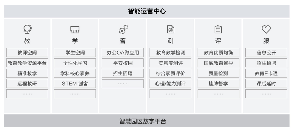 基礎(chǔ)教育是提高國(guó)民素質(zhì)和造就人才的基礎(chǔ)工程,從作坊式教育和工廠式教育逐步走向個(gè)性化教育發(fā)展中國(guó)的教育發(fā)展已經(jīng)發(fā)生了翻天覆地的變化。智能化校園解決方案以人為本,通過(guò)數(shù)字化技術(shù)實(shí)現(xiàn)從傳統(tǒng)教育向智慧教育轉(zhuǎn)變,從傳統(tǒng)校園向智慧校園轉(zhuǎn)變,圍繞教、學(xué)、管、測(cè)、評(píng)、服等六個(gè)方面,打造健康、安全、高效、創(chuàng)新的智慧校園;將各校園相關(guān)數(shù)據(jù)進(jìn)行采集、匯聚、分析、服務(wù),實(shí)現(xiàn)區(qū)域教育、教學(xué)優(yōu)質(zhì)資源的共享。